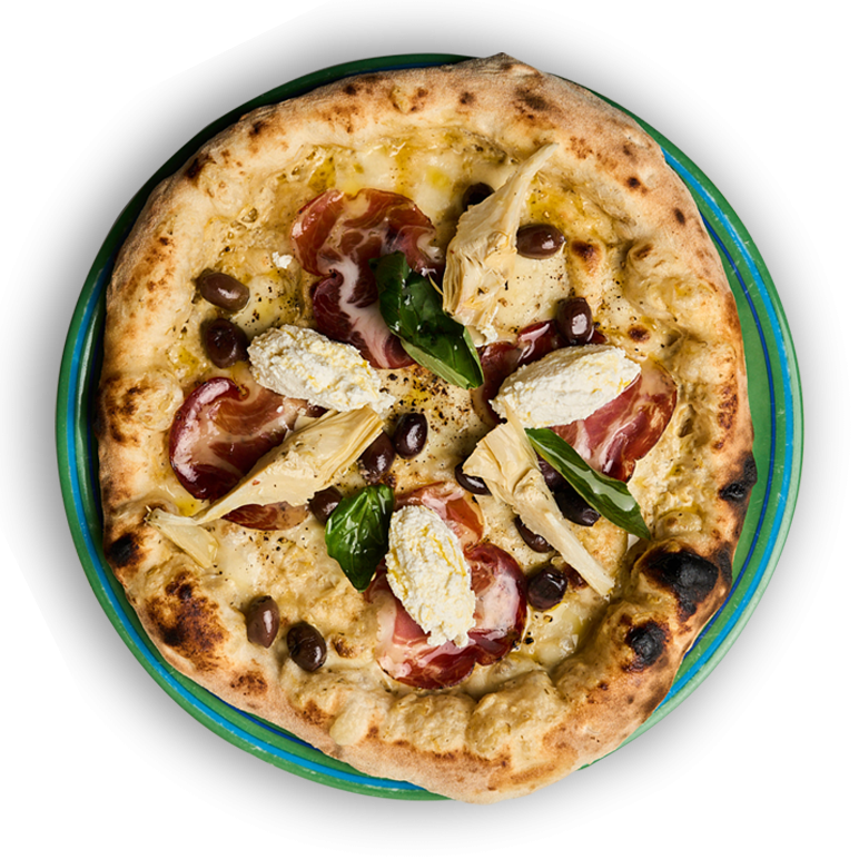Ce fumet de pain levé que vous sentez, c'est celui de la croûte dorée si caractéristique de la pizza Napolitaine. Doucement, tranquillement, elle gonfle dans notre four, cratère ardent, avant d'être nappée d'une lave dont nous avons le secret : une sauce tomate acidulée faite de produits bruts de qualité. Issus des plus beaux terroirs italiens, accrochés sur les flancs du Vésuve ou un peu plus loin, de notre burrata à nos légumes confits, de nos dolci à nos arancini, une seule et même idée : ébranler le palais d'une explosion de saveurs.